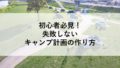 初めてのキャンプでは、以下のポイントに注意すると失敗を防げます。