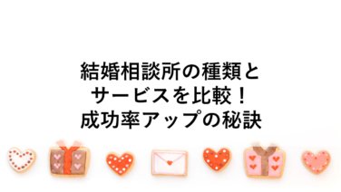 マッチングアプリ結婚相談所選びで失敗しない!成功の秘訣 結婚相談所選びは人生の重要なステップです。データマッチング型、仲人型、ハイブリッド型などの種類や費用、サポート体制、口コミを基に比較し、自分の希望に合った相談所を選びましょう。慎重に検討することで理想のパートナーとの出会いを実現できます。 2024.12.28マッチングアプリ